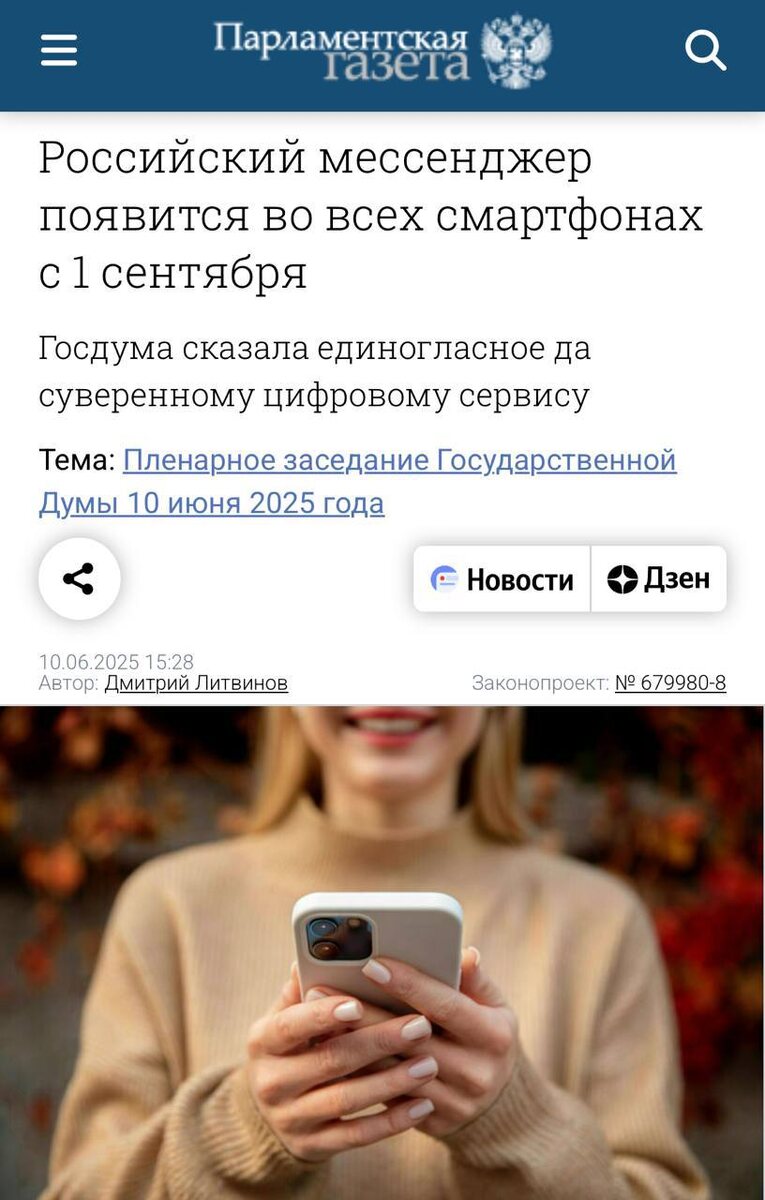 С 1 сентября 2025 года все новые смартфоны и планшеты, продаваемые в России, будут оснащаться российским аналогом Telegram. Приложение получит расширенные функции, включая интеграцию с Госуслугами, создание цифрового ID и проведение финансовых операций. 🔹 Полная интеграция с Госуслугами — авторизация по цифровому паспорту