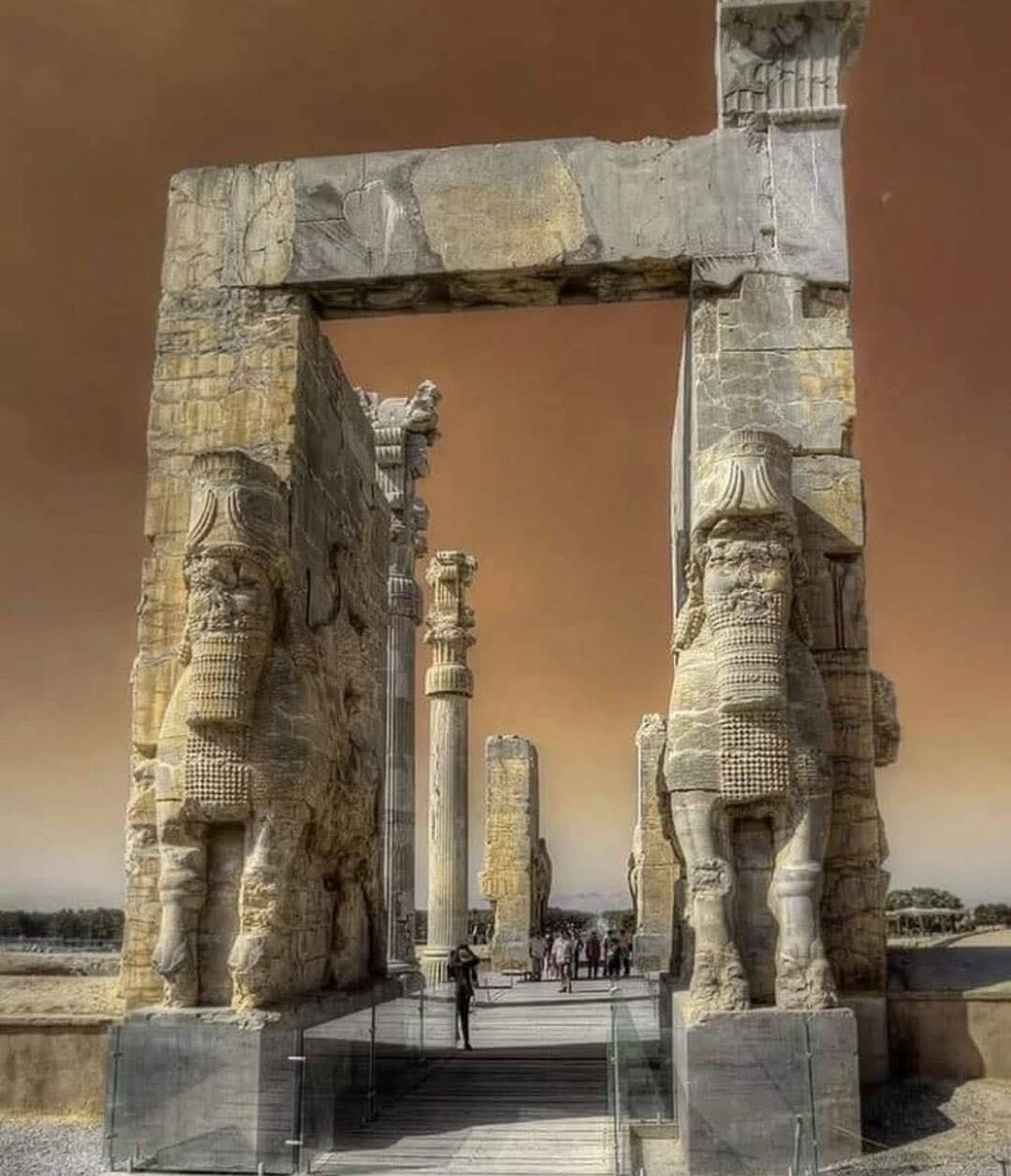 Врата всех народов — величественный вход в Персеполь В древнем Персеполе, сердце Персидской державы, стоит один из самых впечатляющих памятников эпохи Ахеменидов — Врата всех народов, или Врата Ксеркса. Их строительство было задумано царём Ксерксом I (486–465 гг. до н. э.), преемником Дария Великого и продолжателем грандиозного проекта Персеполя. Врата представляли собой огромный зал — почти 25 метров в длину, с четырьмя колоннами, каменными входами с трёх сторон и… посланием самому времени. На входах выбиты слова царя на трёх языках (древнеперсидский, вавилонский, эламский): "Велик Бог Ахура-Мазда, создавший землю, небо, человека, счастье для человека, сделавший Ксеркса царём — царём царей, владыкой владык." Через эти Врата проходили послы, народы и воины со всех концов державы. Именно здесь царь царей встречал «всех народов», подчёркивая масштабы империи. По бокам Врат — гигантские статуи. На западном входе — быки-хранители. На восточном — ламассу — мифические существа с телом к