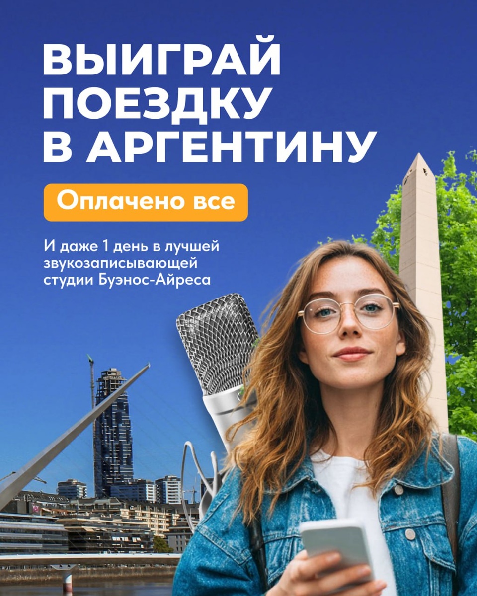 Don’t Cry for Me, 🇦🇷Argentina! Осталось совсем чуть-чуть до момента, когда кто-то из студентов школы TSSS услышит заветные слова: «Поздравляем! В Аргентину к Тиму Штоку летите именно вы!» Перелет и трансферы внутри Аргентины, проживание (6 ночей) в отеле в Буэнос-Айресе, ежедневное трехразовое питание, обзорные экскурсии и даже карманные расходы — все это мы берем на себя. И даже 🎤 запись аудиоматериала под руководством Тима Штока в студии звукозаписи в Буэнос-Айресе — тоже за наш счет! Звучит чересчур круто? А вы проверьте! 👉 Полные правила участия в розыгрыше Аргентина — страна врожденного оптимизма. Если в России принято беспокоиться и подстилать соломку, то аргентинцам это совершенно не свойственно. Здесь в ходу две фразы: «no pasa nada» и «todo bien», что означает «все будет хорошо». Как? Вы еще не с нами? 😱 Завтра 14 июня состоится последний вебинар для тех, кто хочет больше узнать о школе и, возможно, участвовать в розыгрыше «В Аргентину к Тиму Штоку». И, если вы еще д