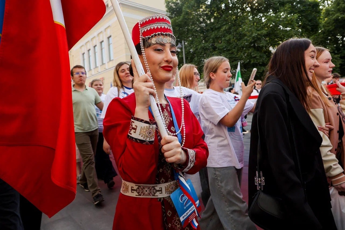 12 июня в Нижнем Новгороде прошёл масштабный «Парад регионов»: более тысячи человек пронесли 100-метровый флаг России по Большой Покровской. Участники — жители всех регионов страны, ветераны, волонтёры и студенты — прошли в национальных костюмах, а завершилось шествие исполнением гимна: https://www.nnov.kp.ru/daily/27712.5/5100434/