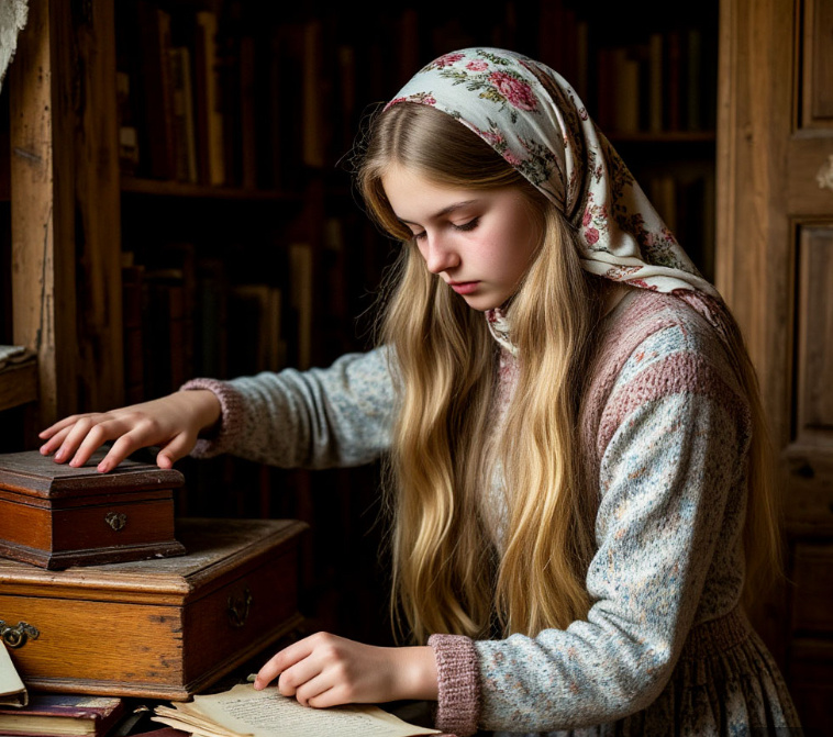 Чердак был темным и душным. Лучи солнца пробивались сквозь щели в крыше, рисуя причудливые узоры на полу, покрытом толстым слоем пыли. Вера и Максим надели старые платки на голову, чтобы защитить волосы от пыли, и начали разбирать вещи. На полу стояли старые сундуки, картонные коробки и потрепанные чемоданы. В углу громоздилась груда старой мебели, покрытая белой простыней. Вера подошла к одному из сундуков и открыла его. Внутри лежали старые платья, пожелтевшие от времени, кружевные воротнички и выцветшие ленты. Она взяла одно из платьев и развернула его. Ткань была тонкой и шелковистой, с вышитыми цветами. Вера представила себе бабушку молодой и красивой, в этом платье. "Нашла что-нибудь интересное?" – спросил Максим, копаясь в одной из коробок. "Старые платья", – ответила Вера. "Посмотри, какая красота. Бабушка, наверное, была модницей в молодости". Максим подошел к ней и взял одно из платьев. "Действительно красиво. Но, думаю, вряд ли это нам пригодится". Он положил платье обра