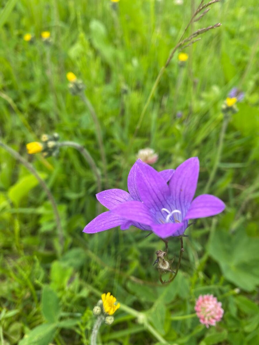 Доброго всем выходного утра! Чем я любуюсь, на своем участке, пока у меня не освоена территория😌 Кажется поле не паханое, а если присмотреться… Тут и колокольчик, ковер из клевера, и злаки модные 😉 #дача #цветы #лето