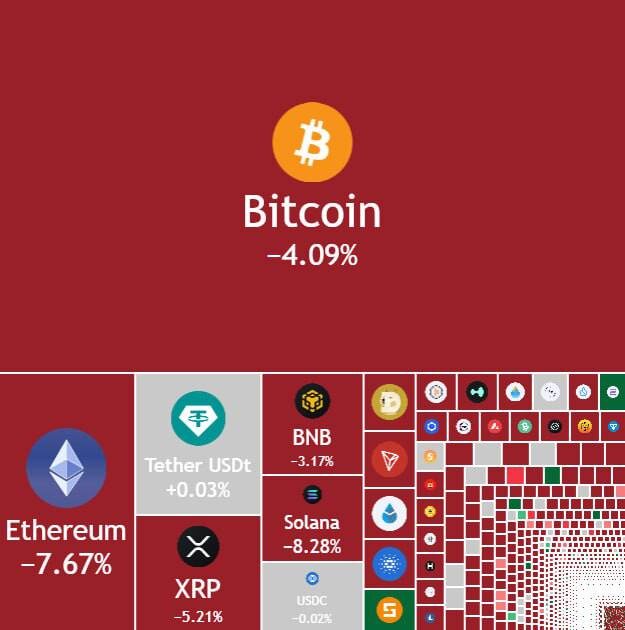 Крипторынок летит вниз на фоне новости об атаке Израиля на Иран.