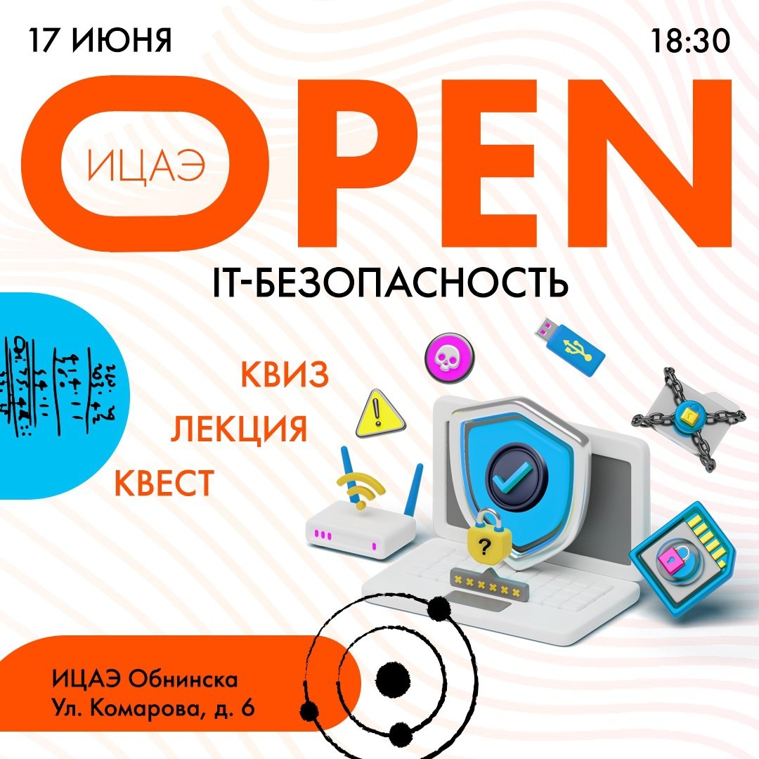 Как безопасно пользоваться интернетом? Какие бывают шифры и для чего они используются? Как создать идеальный пароль, чтобы обезопасить свои данные? Об этом и не только смогут узнать гости ИЦАЭ Обнинска 17 июня в рамках «ИЦАЭ OPEN: IT-безопасность» 💯 В 18:30 начнётся интеллектуальная командная игра «Адреналин». Стартовый баланс каждой команды составляет 100 баллов. Перед вопросами ведущий озвучивает тему, чтобы участники могли оценить свои силы и сделать оптимальную ставку. Правильный ответ увеличивает общий счет команды на сумму сделанной ставки, а неправильный — уменьшает его на столько же. Все вопросы будут посвящены IT-технологиям и кибербезопасности. 🌐 В 19:00 состоится лекция «Безопасный серфинг» от Льва Николаева - руководителя учебно-методического центра «Безопасные информационные технологии» Технической академии Росатома. Он расскажет, как пользоваться интернетом максимально безопасно и с мобильного устройства, и с обычного компьютера. Люди пользуются браузером каждый день