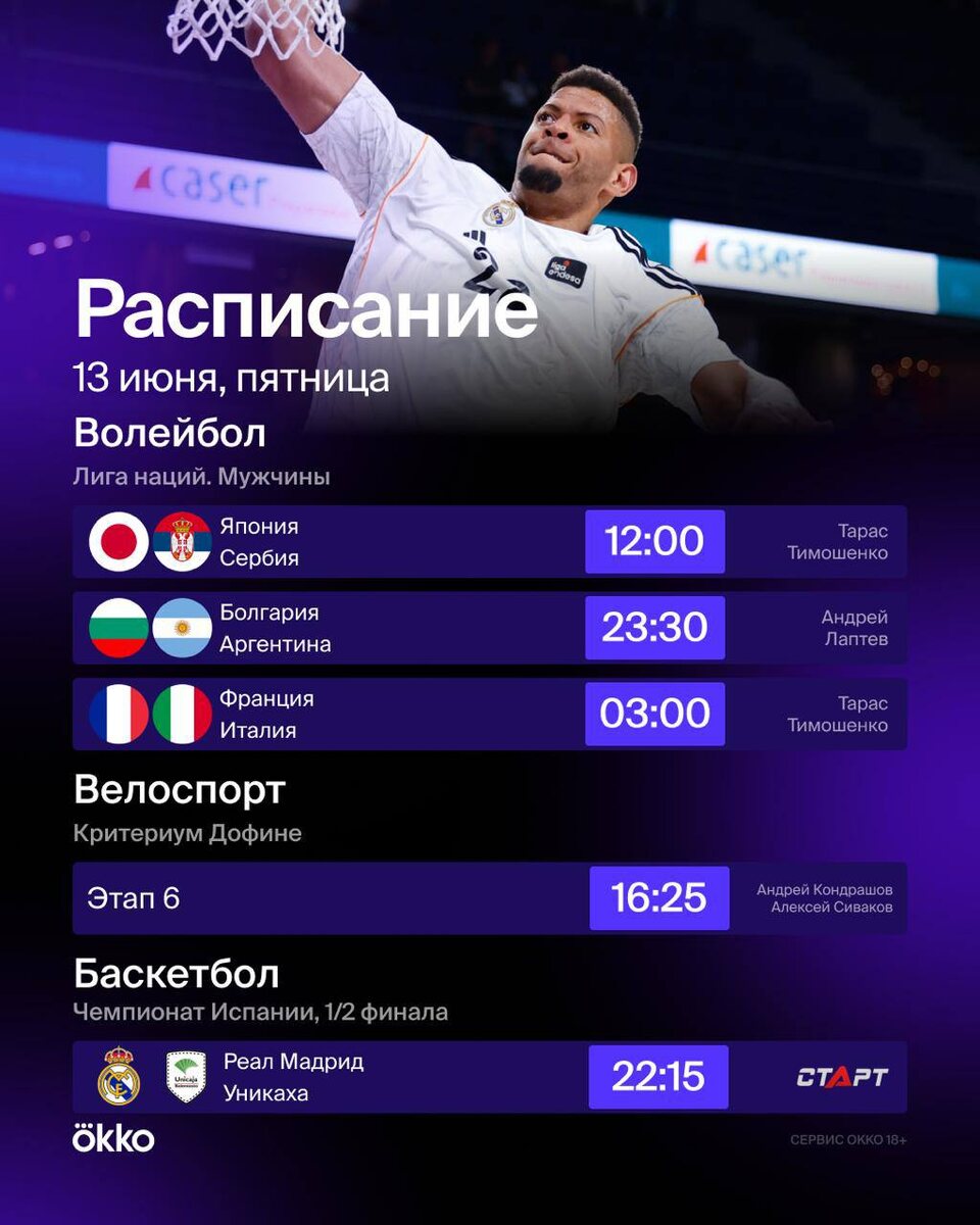 Волейбол + велики + баскет. Расписание на пятницу готово 🤩