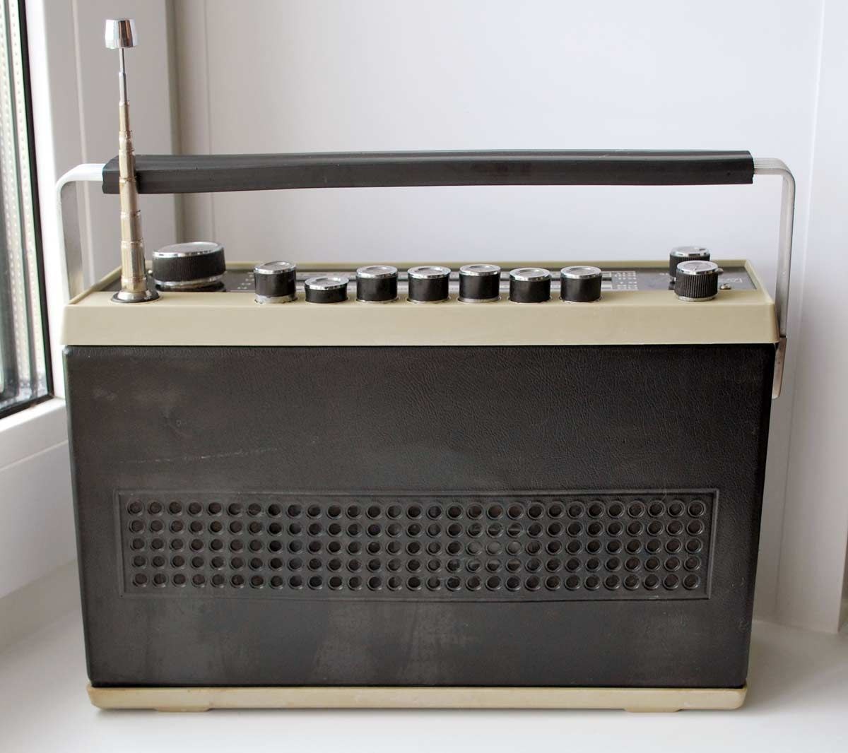 Портативный транзисторный радиоприёмник «Геолог». С 1971 года выпускал Днепропетровский Радиозавод. Этот радиоприёмник 2-го класса предназначен для приёма радиостанций в диапазонах ДВ, СВ и КВ. КВ-диапазон разделён на четыре поддиапазона, что позволяет более точно настроить приём. Чувствительность приёмника на ДВ составляет 2,5 мВ/м, на СВ — 1,5 мВ/м, а на КВ при использовании телескопической антенны — 400 мкВ. Селективность — 40 дБ. Выходная мощность усилителя без искажений — 0,7 Вт. Диапазон воспроизводимых частот охватывает 200…4000 Гц. Питание осуществляется от 6 элементов 373, обеспечивающих напряжение 9 вольт. Габариты модели — 290х190х90 мм, а вес — 2,8 кг. Приёмник выполнен в пылевлагозащитном варианте и идеально подходит для геологов, туристов и других людей, проводящих много времени на открытом воздухе. ➖➖➖➖ РАДИО(73!)