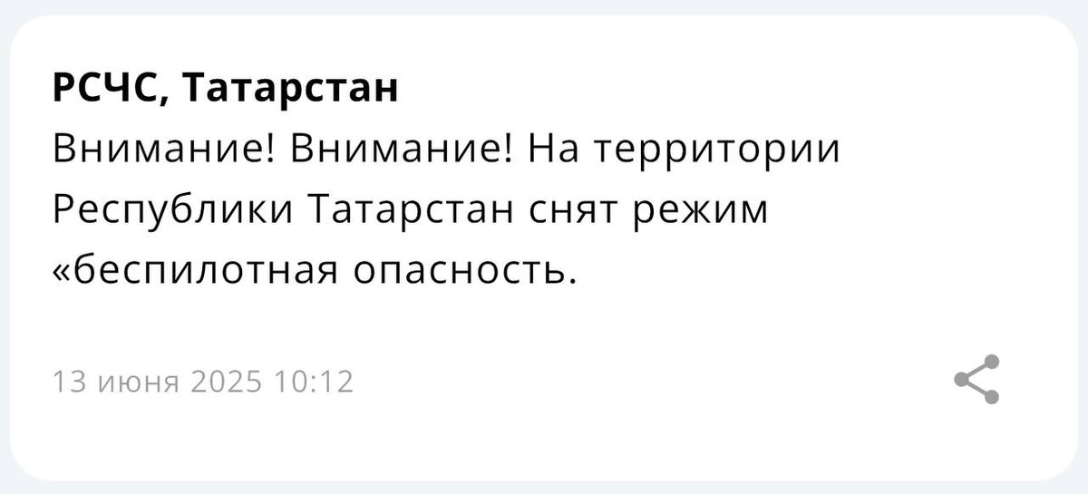 В ответ на пост 👌❕В Татарстане снят режим угрозы атаки БПЛА @tatmediaofficial