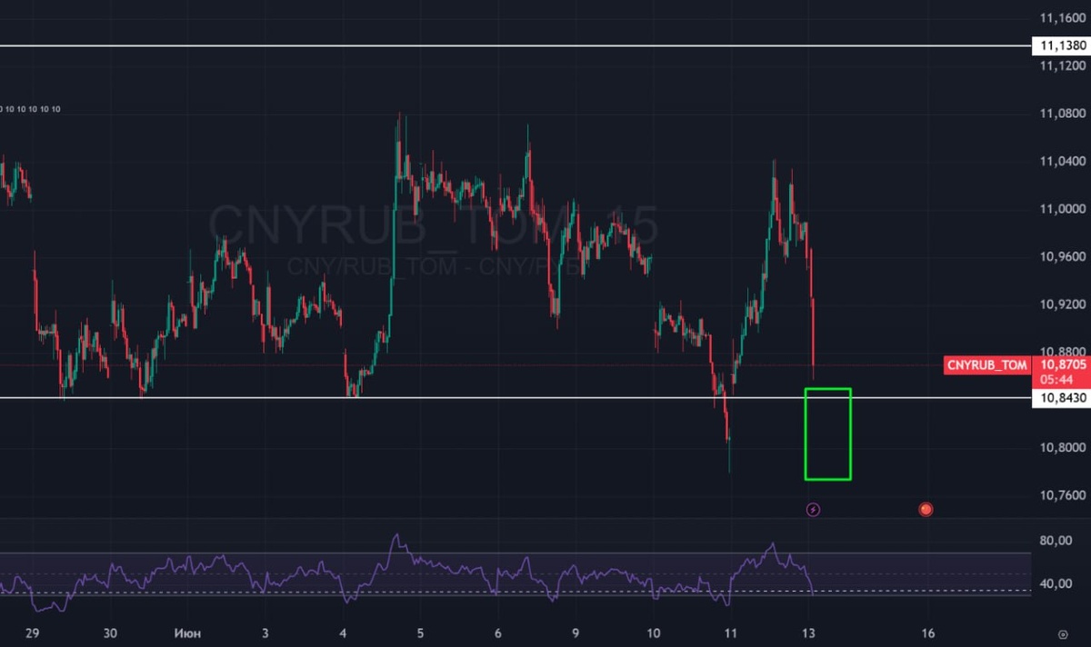 🟢 В юане сегодня появился продавец в 10 утра, валюту прибивают к 10,84 снова.