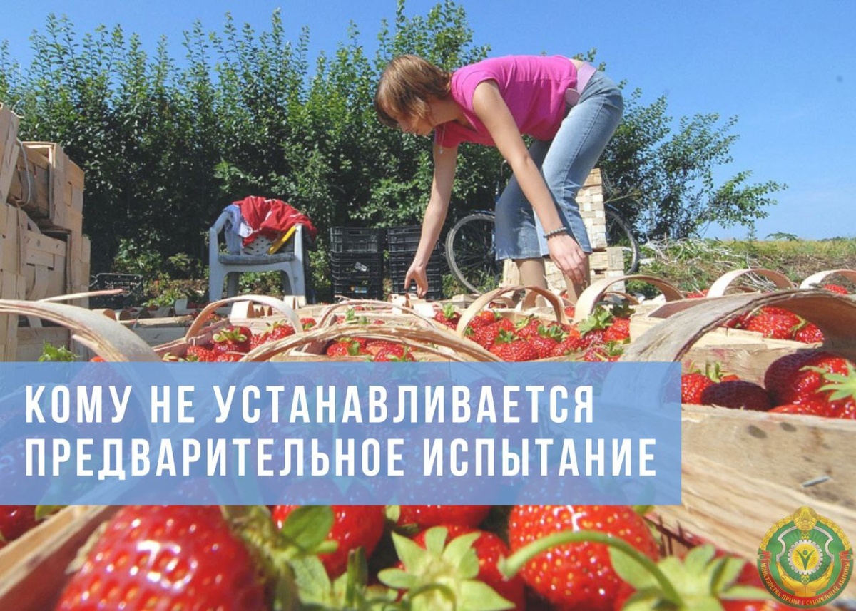 📄 Сразу за дело. Кому при заключении трудового договора не устанавливается предварительное испытание ▪️работникам, не достигшим восемнадцати лет ▪️молодым специалистам (рабочим), получившим профессионально-техническое, среднее специальное, высшее или послевузовское образование ▪️людям с инвалидностью ▪️временным и сезонных работникам ▪️при переводе на работу в другую местность либо к другому нанимателю ▪️при приеме на работу по конкурсу, по результатам выборов.