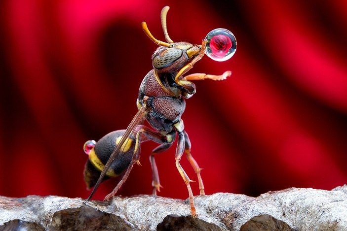 Зачем эти осы пускают мыльные пузыри? На самом деле, это не мыльные пузыри и не воздушные шарики, а всего лишь капельки воды. Их малайзийские общественные осы из рода Mischocyttarus выдавливают из рта, а затем сбрасывают при помощи передних лапок. Таким образом насекомые удаляют излишки влаги из своих гнезд, чтобы те не разбухли. Характерное поведение для ос, обитающих во влажных тропиках. Со стороны это выглядит так. Осы ходят по гнезду, всасывают воду ртом, а затем выплевывают капельки. Кстати, дополнительной защитой служит и водоотталкивающая слюна, которой осы смазывают свои гнезда. Но этого, по всей видимости, хватает не всегда.