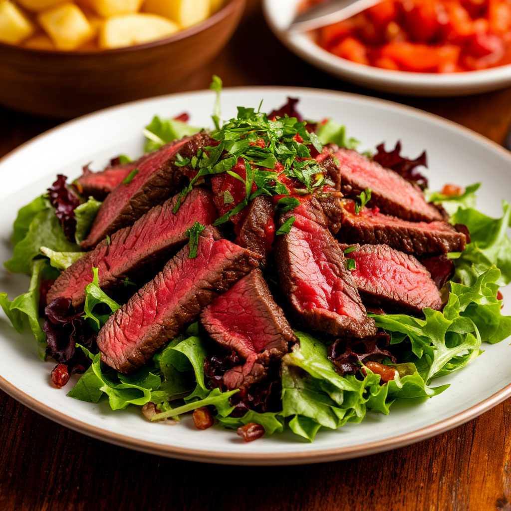 Салат «Обжорка» - это сытный и калорийный мясной салат, который особенно популярен среди мужской аудитории. Он отлично подойдет как для повседневного меню, так и для праздничного стола. Ингредиенты: Калорийность: 127 кКал