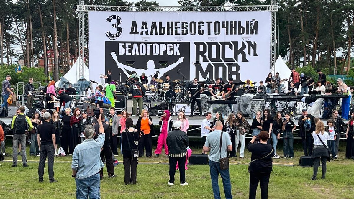 Концерт под открытым небом продлится два часа. 13 июня в Белогорске пройдет третий Дальневосточный рок-н-моб. В этом году в числе заявившихся музыканты и солисты из Белогорска, Москвы, Биробиджана, Благовещенска, Кирова, Сковородино, Свободного, Читы, Владивостока, Хабаровска, Перми, Кокуя, Иркутска, Райчихинска, Шимановска, Якутска, Тулы, Возжаевки, Ивановки и Прогресса. Концерт под открытым небом пройдет с 18:00 до 20:00 на территории парка культуры и отдыха. Участники большого оркестра исполнят шесть песен на два круга. По окончании выступит группа "Эффект колибри" (город Пермь). В программе флэшмоба следующие песни: AC/DC - "Are You Ready", Король и Шут - "Кукла Колдуна", Nirvana - "Smells Like Teen Spirit", Виктор Цой - "Кукушка" (версия Ольги Кормухиной), Led Zeppelin - "Whole Lotta Love" (без проигрыша в середине), Татьяна Куртукова - "Матушка земля" (рок-версия). В этом году изменено расположение музыкантов. Если раньше играли "с земли", то сейчас организаторы установили двухур