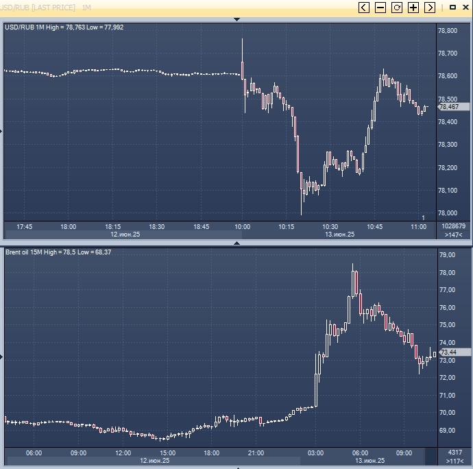 Цены на нефть резко выросли утром в пятницу на фоне новостей об ударах Израиля по Ирану. Стоимость августовских фьючерсов на нефть марки Brent на лондонской бирже ICE Futures увеличилась на 5% и достигла 72,82 доллара за баррель. В четверг эти контракты подешевели на 0,59%, опустившись до 69,36 доллара за баррель.