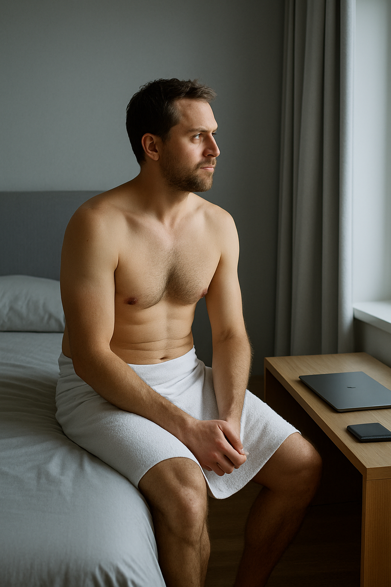 Я положил телефон. Пошёл в душ. Холодный. Почти ледяной. Захотелось встряхнуться. Мысли о работе, планах, деньгах, долгах, семье — всё смешалось. Я вышел, вытерся, и сел на кровать. Просто так. Без телефона. И тогда возник вопрос — настоящий: