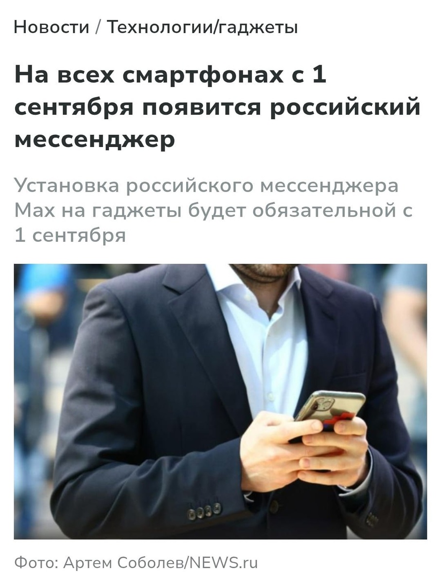 ⚡️Отечественный аналог Telegram будут предустанавливать на все продаваемые смартфоны и планшеты в России Госдума одобрила соответствующий