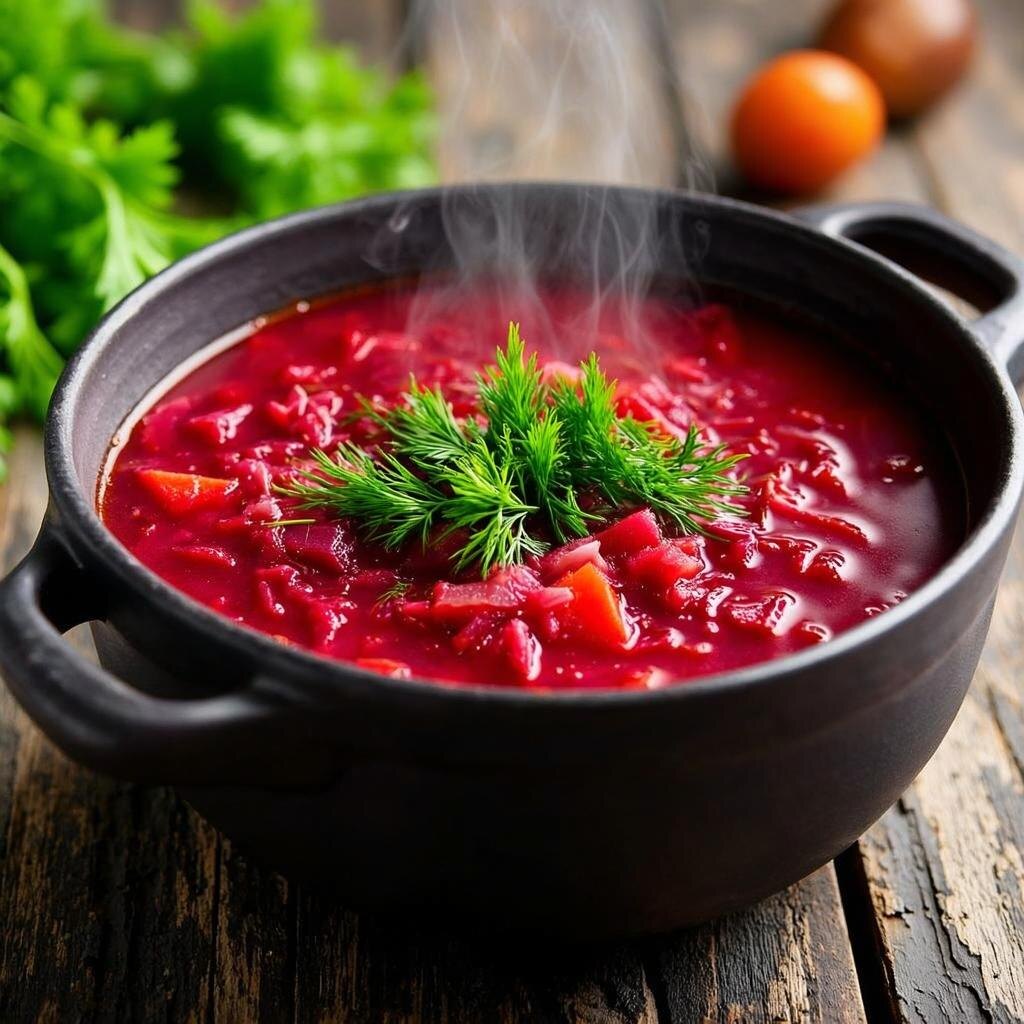 Вот подробный пошаговый рецепт вкусного томленого борща в горшочках с грибами, белой фасолью. Ингредиенты: - Белая фасоль (предварительно замоченная на ночь) — 200 г - Грибы свежие (шампиньоны или белые грибы) — 200 г - Картофель — 2 средних штуки - Морковь — 1 крупная - Лук репчатый — 1 средняя головка - Свёкла вареная — 1 небольшая - Чеснок — 2 зубчика - Масло растительное — 2 столовые ложки - Зелень свежая (петрушка, укроп) — по вкусу - Вода кипяченая или овощной бульон — 500 мл - Соль, перец черный молотый — по вкусу - Паприка копченая (для аромата) — щепотка - Горшочки глиняные — 2-3 штуки Пошаговая инструкция: 1. Подготовительные этапы: 1. Белую фасоль предварительно замочить на ночь в воде комнатной температуры. 2. Свёклу отварить отдельно до готовности, остудить и очистить. 3. Грибы промыть, нарезать крупными ломтиками. 4. Картофель почистить и порезать небольшими кубиками. 5. Репчатый лук мелко порубить. 6. Морковь натереть на крупной терке. 7. Чеснок измельчить ножом или п