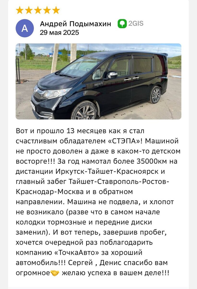 Ваши отзывы, лучшая мотивация для нас 🙌 Напоминаем, что мы работаем по всей России, не важно из какого Вы города! Доставим авто в любую точку нашей страны🇷🇺 ✅ Отзывы в 2ГИС: https://2gis.ru/irkutsk/geo/70000001079267695 ✅ Отзывы в Яндекс картах: https://yandex.ru/maps/org/tochka_avto/64756966508/ Благодарим за доверие и выбор нашей компании🤝 #отзывы_точка_авто