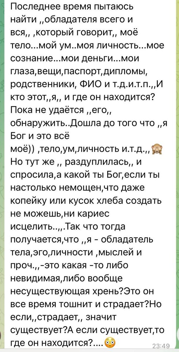 Очень точно: когда пытаешься найти обладателя, он ускользает, потому что его нет как существа, только мысль о нём.