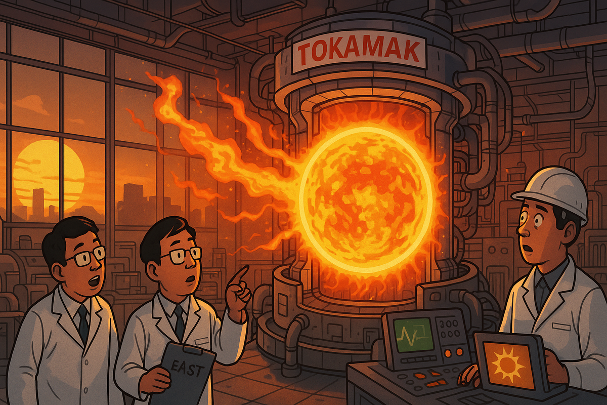 Если тебе казалось, что человечество двигается к апокалипсису слишком медленно - подожди, у меня есть новость. Китай включил искусственное солнце. Оно в 10 раз горячее настоящего. Не пельмени подгорели, не утюг забыл выключить - 160 миллионов градусов. По Цельсию. И нет, это не новый рекорд в сауне. Что за искусственное солнце и зачем оно вообще нужно? Официальное название — термоядерный реактор EAST (Experimental Advanced Superconducting Tokamak). Но мы будем называть его просто - Солнышко, от которого не позагораешь, но можно испариться. Главная идея - повторить то, что происходит внутри настоящего солнца: водород превращается в гелий, при этом выделяется энергия. Это называется термоядерный синтез, и если его приручить, то мы получим почти бесконечный источник чистой энергии. Да-да, звучит красиво. А выглядит - как огромный адский чайник, в котором кипит вся таблица Менделеева. Почему это вообще смешно? Во-первых, люди, у которых до сих пор не работает домофон, созда