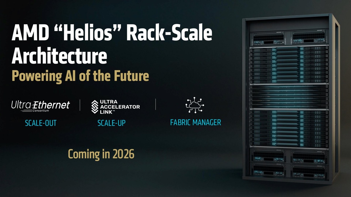 AMD анонсировала стоечное решение Helios с ИИ ускорителями Instinct MI400 и процессорами Epyc Venice