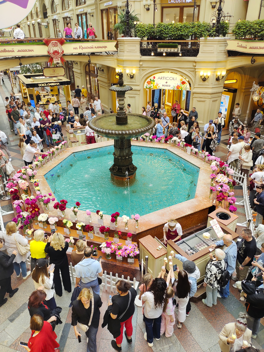 Вчера побывала в ГУМе на выставке пионов. Красота конечно необыкновенная. Но кроме пионов, я конечно же, как истинная женщина, не обошла вниманием витрины. А в них выставили летнюю коллекцию. С тех пор как европейские бренды покинули Россию, в витринах появляются вещи, которые действительно хочется носить, а не всякие там прибамбасы с подиумов, призванные поразить зрителя. Вот и в этот раз все вещи, выставленные в витринах хотелось прикинуть на себя. Обратите внимание, как рисунок точно расположен в нужных местах - на манжетах помельче, на юбке и плечах покрупнее. Модель простая, но этот узор очень ее украшает. Еще одно платье-халат в этническом стиле. Эта модель мне понравилась меньше, уж слишком она "мягкая" и слишком напоминает домашнюю одежду. Но так как пижамный стиль все еще в моде, то возможно, что и платье-халат в таком стиле тоже будет неплохо смотреться в этом сезоне. Я заметила, что в этом сезоне платье-халат один из фаворитов. Вообще, как я заметила, простота в одежд