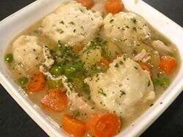 Ирландская курица с клецками Это очень любимое блюдо нашей семьи. 🍴 Количество: 6 порций Ингредиенты ✅ 2 (300 гр) банки сгущенного куриного супа со сливками ✅ 3 чашки воды ✅ 1 чашка нарезанного сельдерея ✅ 2 луковицы, нарезанные четвертинками ✅ 1 чайная ложка соли ✅ ½ чайной ложки приправы для птицы ✅ ½ чайной ложки молотого черного перца ✅ 4 половинки куриной грудки без кожи и костей ✅ 5 морковок, нарезанных кусочками ✅ 1 (300 гр) упаковка замороженного зеленого горошка ✅ 4 картофелины, нарезанные четвертинками ✅ 3 чашки смеси для выпечки ✅ 1 ⅓ чашки молока. Инструкция приготовления 1. В большой тяжелой кастрюле соедините суп, воду, курицу, сельдерей, лук, соль, приправу для птицы и перец. Накройте крышкой и варите на медленном огне около 1 1/2 часов. 2. Добавьте картофель и морковь, накройте крышкой и варите еще 30 минут. 3. Выньте курицу из кастрюли, измельчите ее и верните в кастрюлю. Добавьте горох и варите еще 5 минут. 4. Добавьте клецки. Чтобы приготовить клецки: Смешай