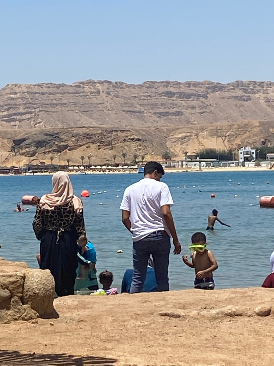 На пляже солнце, шум волн и… ни одного привычного тебе купальника из Инстаграма. Египтяне не купаются в плавках и бикини. В чем купаются мужчины? Плавки-шорты — это да, классика.Но есть и джинсовые шорты, да-да, прямо в воду. И даже обычные спортивные штаны. Бывает, что мужчины не раздеваются вовсе — просто заходят в футболке и брюках по колено. Главное — не форма, а освежиться. А женщины? Если это туристки — всё как обычно: бикини, слитные купальники, парео. Но египтянки на пляже чаще всего в специальном “буркини” — это скромный мусульманский купальник: длинные штаны + туника + капюшон. Некоторые женщины купаются прямо в длинной одежде и хиджабе. Особенно если это семейный пляж или общественный. Кто привлекает внимание? Дети в шапочках, масках, спасательных кругах размером с холодильник. Они самые громкие и самые счастливые.Пожилые мужчины — купаются в майке, обсуждая политику. Вода по пояс — им достаточно. Селфи-блогеры — и таких всё больше. Селфи в море, на камнях, с ка