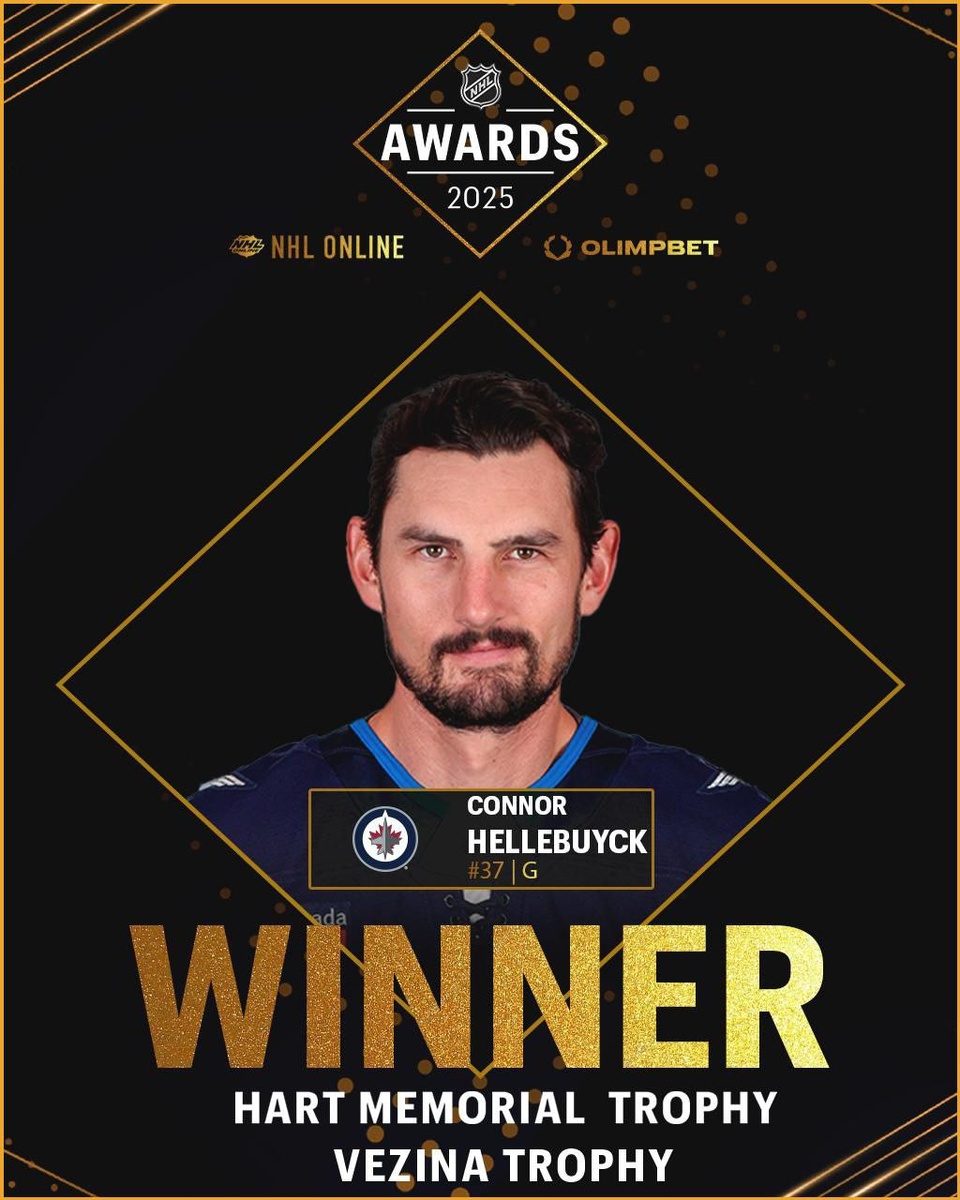 🧊🛩 Коннор Хеллибак — герой сезона! Вратарь «Виннипега» забрал сразу две престижнейшие награды НХЛ