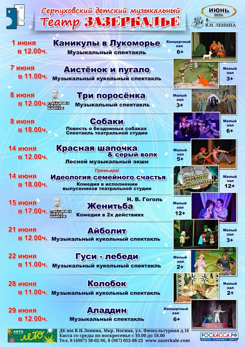 ✨ Анонс спектаклей на завершающий месяц театра! Обратите внимание, что на некоторые спектакли можно приобрести билеты по Пушкинской карте⚡️ 💳 Ссылка на билеты: http://zazerkale.com/ 🏢 Серпуховский детский музыкальный театр "Зазеркалье" 📍 г. Серпухов, мкр-н Ногина, ул. Физкультурная, 16 в ДК им. В. И. Ленина #webСерпухов ⭐Разместить публикацию ⭐Поддержать канал голосом ✅ Мероприятия Серпухов https://dzen.ru/id/66f01c6eb4c6fe60c9ca1608 http://vk.com/serpukhov_events http://dzen.ru/serpukhov_events