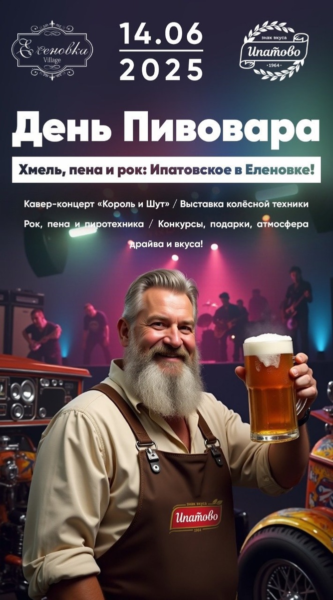 ❗️14 июня в рамках фестиваля АВТОШОК отмечаем День Пивовара! 🍺 🎉 Встречайте Ипатово в Еленовке! 🎉 На празднике вас ждёт настоящее хмельное настроение, море пены и мощный рок от группы Джокер - Король и Шут! 🎸🔥 Не пропустите — отличный повод провести время в компании друзей, насладиться качественными напитками и зажигательной музыкой!🤘🎶 Приезжайте! Будет вкусно, весело и драйвово! 💥