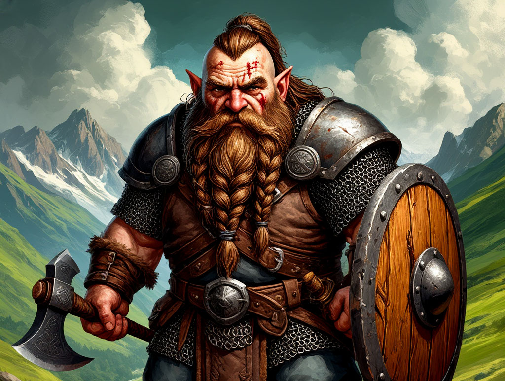 Персонаж для Онлайн приключения "Отряд изгоев" Родился Тордек в суровых северных горах, где даже камни трясутся от холода, а медовуха пьётся не ради удовольствия, а чтоб не замёрзнуть насмерть. Клан Холмогоров славился стойкостью и мастерством в бою: у них даже дети учились махать топором одновременно со своими первыми словами “ещё медовухи”. С малых лет Тордек был упрямым и ворчливым — говорят, его первым словом было “отвали”. Но за этой суровой оболочкой скрывалась душа добряка: он мог наорать на тебя за то, что ты разлил пиво на стол, а потом сам же взять тряпку и вытереть, при этом бурча что-то вроде: "Руки из задницы, кроме меня тут все дебилы..." В юности Тордек стал мастером боевых искусств — не просто воином, а настоящим учителем. Тренировал молодых дварфов, защищал родные земли от гоблинов и прочей нечисти. Всё шло по накатанной, пока не приключилась история с гоблинами и эльфами. Когда клану Холмогоров понадобилась помощь — эльфы отвернулись. Мол, спешили очень. Ну-ну. В ито