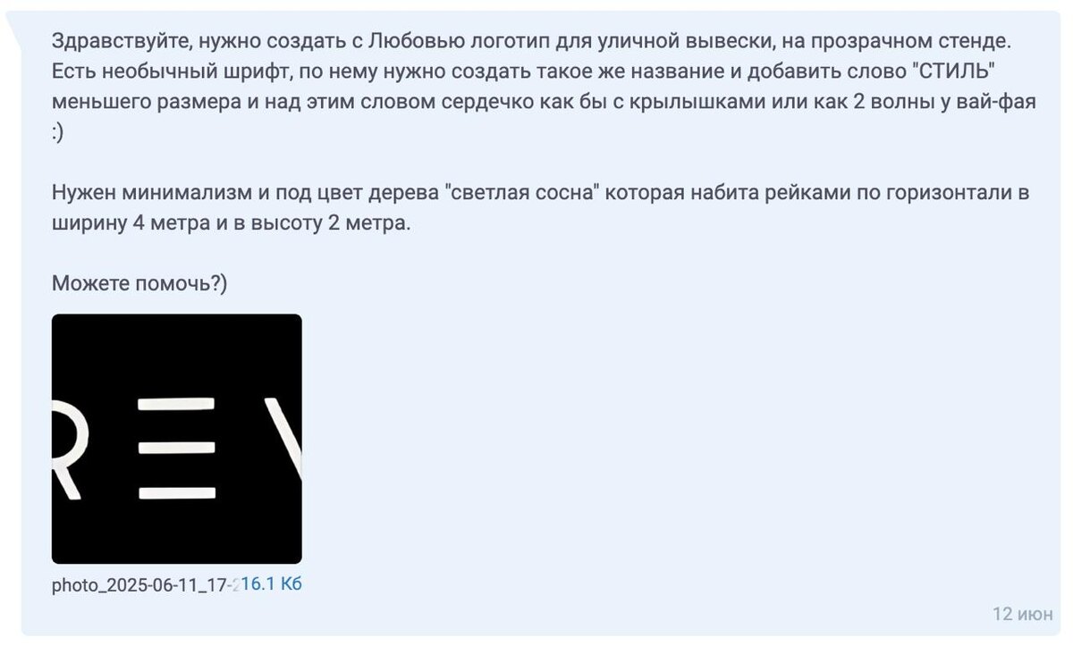 Ох уж эти странные заявки. Может, вы знаете: 1. Как создать логотип с любовью? 2. Какой код у цвета дерева «свтелая сосна», которая набита рейками по горизонтали в ширину 4 метра и в высоту 2 метра.