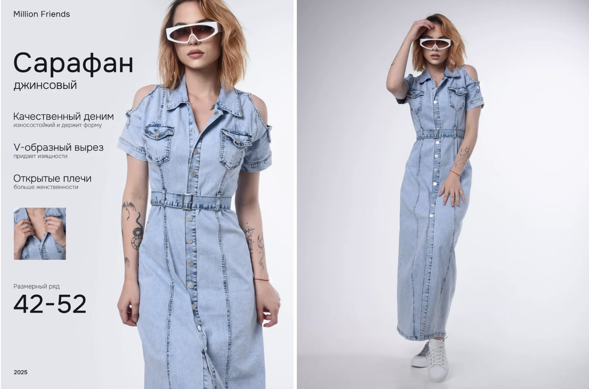 Привет, дорогие читатели! Сегодня делюсь с вами подборкой из семи стильных и практичных новинок с Wildberries, которые могут стать настоящим открытием для вашего летнего гардероба. Все товары я отобрала с учетом актуальных трендов, комфорта и универсальности — как раз то, что мы с вами любим! ⚠️ Важно: эта статья носит исключительно информационный и развлекательный характер. Я делюсь личными находками и впечатлениями, не настаивая на покупке каких-либо товаров. Все мнения и оценки являются субъективными. Стильный сарафан из плотного варёного денима — универсальный выбор для жарких дней. Приталенный крой, отложной воротничок, застёжка на пуговицах и женственный V-образный вырез создают элегантный образ, а короткие рукава делают его удобным для повседневного ношения. Макси-длина с разрезом спереди добавляет лёгкости, а натуральный хлопок обеспечивает комфорт даже в зной. Отлично сочетается с ремешком, босоножками и летней шляпой — идеальный вариант на каждый день и даже для офиса. Цена:
