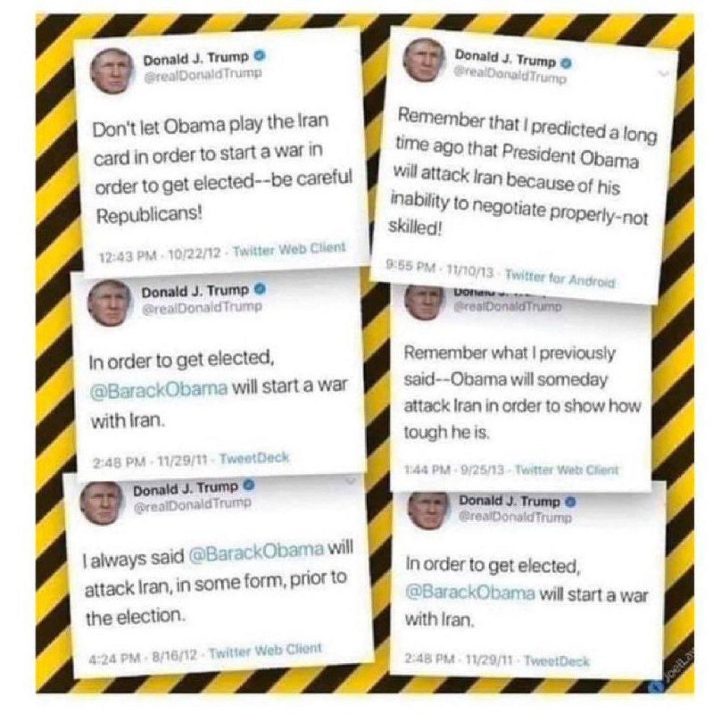 🇺🇸🇮🇷 А помните как Трамп истерил по поводу возможной войны с Ираном в случае если Обама станет президентом? Дескать, Обама обязательно