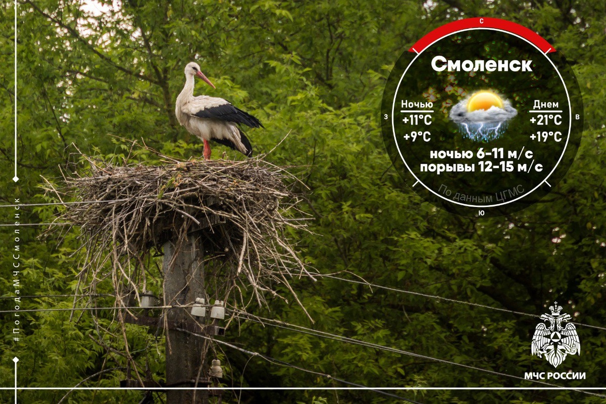 😒Прохладная неделя на Смоленщине продолжается Суббота встретит Смоленскую область облачной, с редкими прояснениями погодой. Ночью небо затянут облака, и местами по области пройдет небольшой дождь. Днем облака станут разорванными, ненадолго уступая место солнцу, но кратковременные дожди все же возможны. Местами, по области, не исключены грозы. 🌬Ветер продолжит дуть с севера. Его скорость составит 6-11 м/с, а днём ожидаются порывы до 12-15 м/с. Температура заметно ниже привычных июньских значений. 🥶Ночью: по области: +8°C…+13°C в Смоленске: +9°C…+11°C 🌡Днем: по области: +17°C…+22°C в Смоленске: +19°C…+21°C Атмосферное давление 738 мм ртутного столба, существенно меняться не будет. По народным приметам, пасмурная погода 14 июня предвещала хороший урожай льна. Гром в этот день указывал на обилие грибов осенью. Если же становилось ощутимо холоднее, это считалось признаком ранней осени. А сильный ливень предупреждал о дождливом августе. Погода год назад @ГУ МЧС России по Смоленско