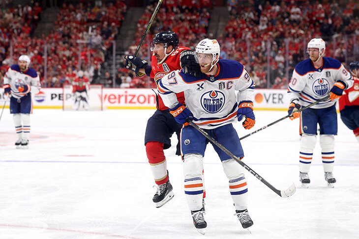 Но дадут ли снова «Конн Смайт»? Коннор Макдэвид – пока не самый заметный персонаж финала Кубка Стэнли-2025. И может показаться, что канадец уже не тот – особенно если посмотреть на его суммарную статистику двух последних матчей – 0+1. Но даже в финале он идет по графику «больше очка за игру», а вообще у Макдэвида уже 6+26 в плей-офф – и второй год подряд он выбивает больше 30 очков. И на самом деле это безумно круто. Такое удавалось только единицам в НХЛ Статистика Макдэвида почти уникальна. Он уже рядом с легендами В компании – сплошь великие. Никиту Кучерова так называть вполне можно. Да и Леона Драйзайтля тоже: шесть регулярок с 100+ очками, три плей-офф с 30+ баллами – немец однозначно в топ-5 игроков всей НХЛ и идет в сторону 1500 очков к концу карьеры. Если же брать не розыгрыши подряд, а общее количество, то у Макдэвида уже три плей-офф с 30+ очками – в 2022-м даже без выхода в финал он выбил 10+23 в 16 матчах и стал лучшим бомбардиром. Тогда Коннор в среднем набирал больше 2 оч