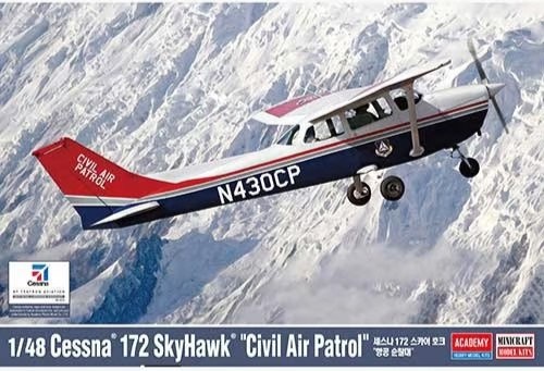 Academy из Южной Кореи переиздает с новой декалью модель разработки Minicraft Model 2005 года Cessna 172 Skyhawk в масштабе 1/48: Cessna 172 Skyhawk "Civil Air Patrol" (каталожный номер 12367)