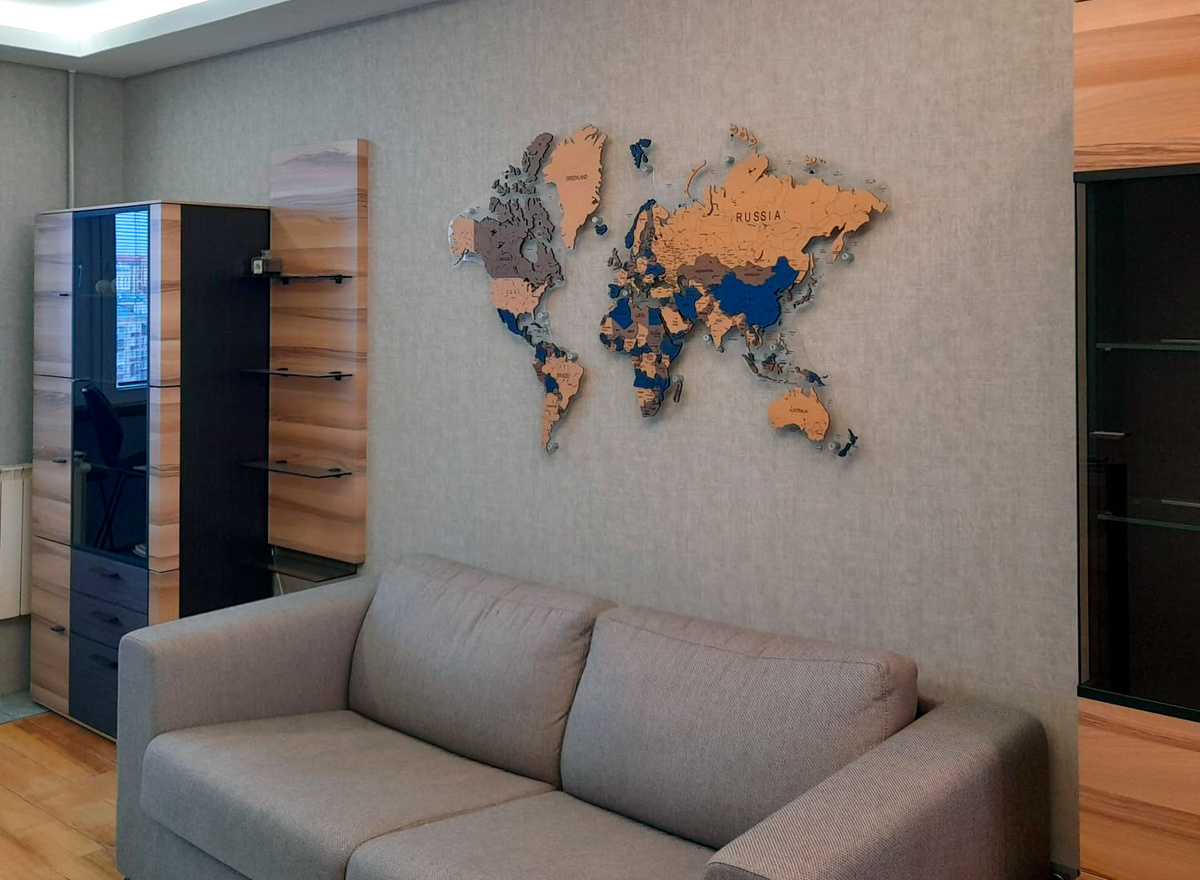 Деревянные карты мира на стену — это не просто стильный акцент, а полноценный элемент интерьера, требующий грамотного окружения. Чтобы такая карта действительно стала центром композиции, а не выглядела случайным предметом, важно уметь сочетать её с остальным декором.