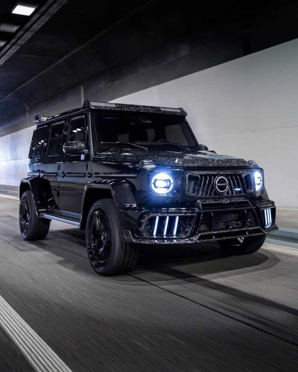 Mansory выкатили свой вариант электрического Гелика. Внедорожник на батарейках получил агрессивный обвес из кованого карбона, решётку в духе бензинового G-класса и капот с воздуховодами. Внешне — почти AMG, но без звука мотора. Также поставили 24-дюймовые диски и окрасили тормозные суппорты в синий — чтобы не забывали, что под капотом не мотор, а батарея
