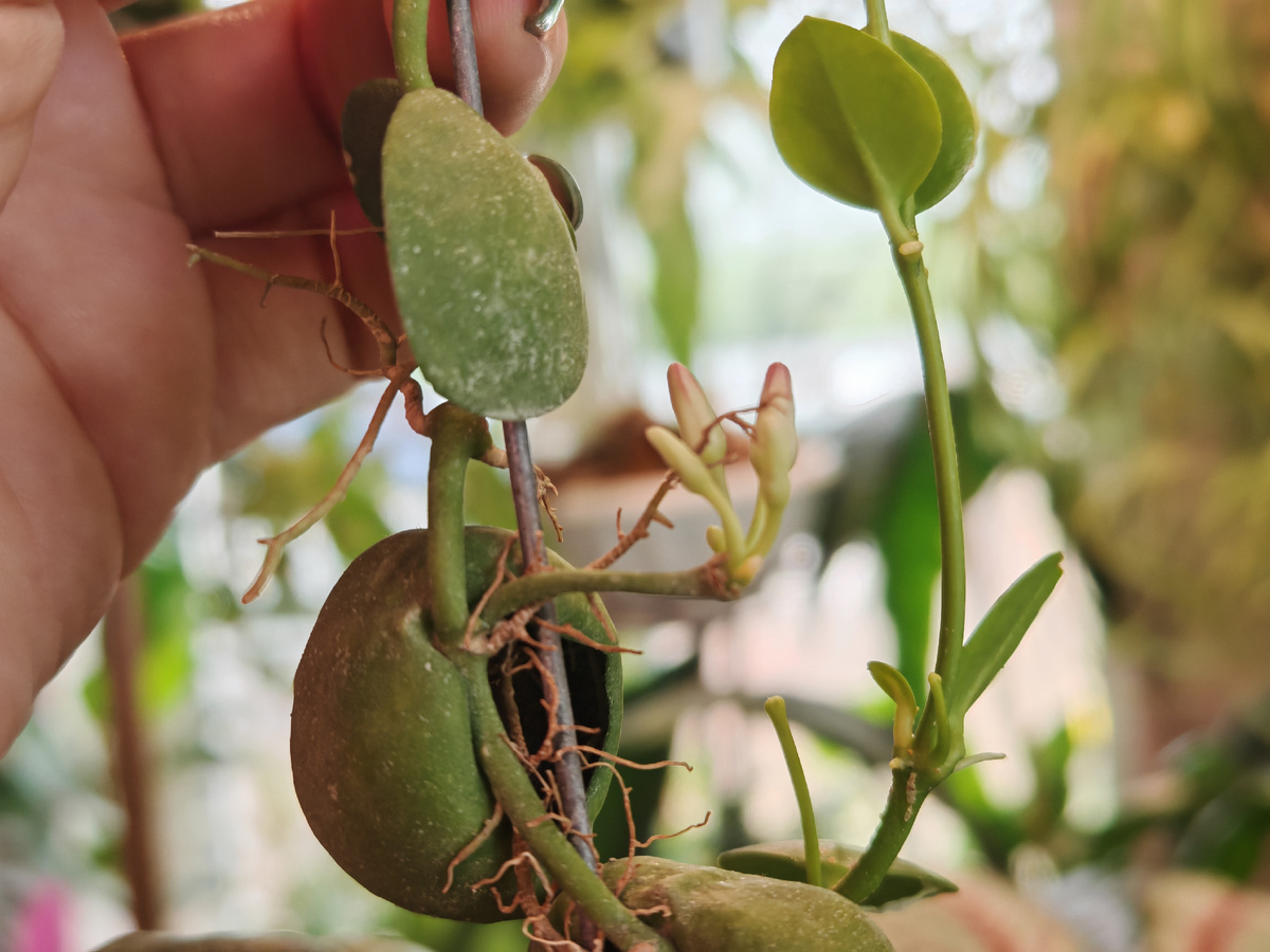 А как же продолжение рода? Скромно, но изящно. Дисхидия выпускает короткие цветоносы, на которых расцветают крошечные восковые жемчужинки. Чаще всего они ярко-красные или огненно-оранжевые, похожие на миниатюрные кувшинчики или фонарики, собранные в плотные пучки. Этот дерзкий всплеск цвета в зеленом мире – сигнал для опылителей: нектар здесь! После цветения могут завязаться стручковидные плодики, наполненные летучими семенами, готовыми отправиться в воздушное путешествие на поиски новой ветки-родины.