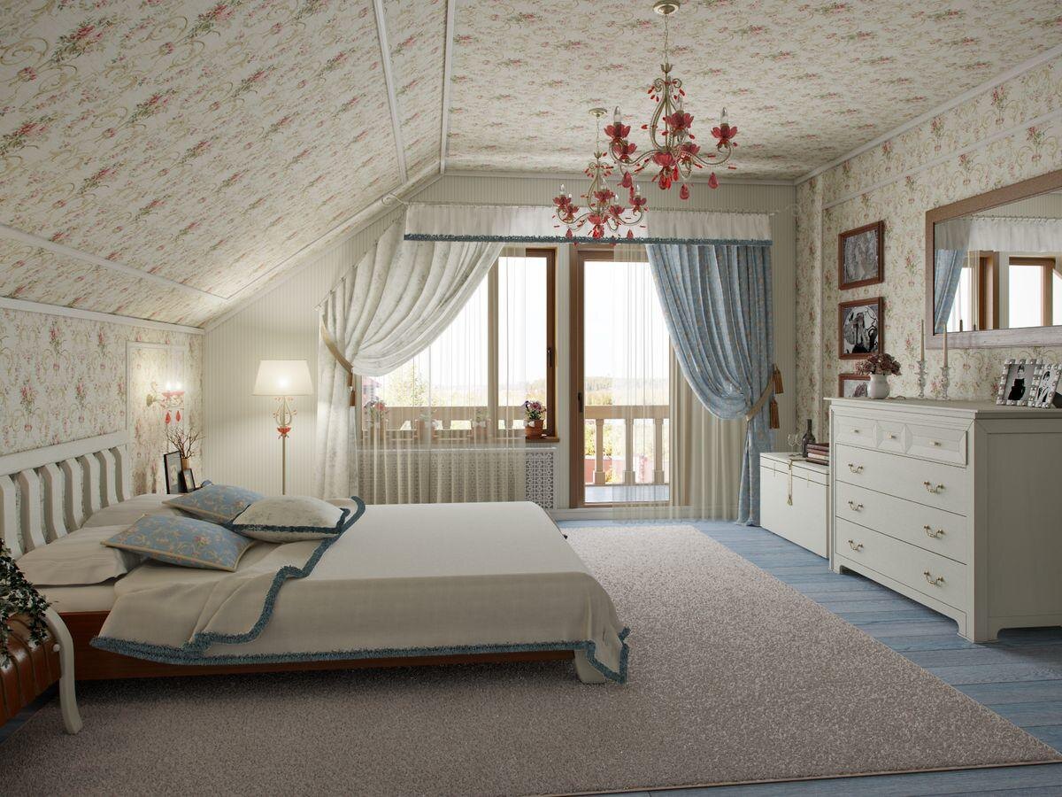 Спальня на мансарде часто вызывает вопросы — как вписать кровать, если потолок скошенный, а стены нестандартные?
