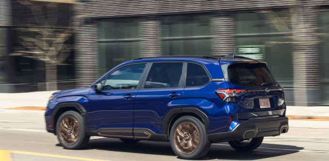 2025 модельный год ознаменовал начало выпуска шестого поколения Forester. У него новый дизайн фар и задних фонарей. Все панели кузова новые и помогают придать Forester более современный вид, но не обманывайтесь, в нем по-прежнему сразу узнается Forester. Цветовая комбинация нашего тестера помогает ему выделяться, поскольку мотив синей краски и бронзовых колес заимствован у прославленного WRX. (Это было сделано специально? Возможно.)