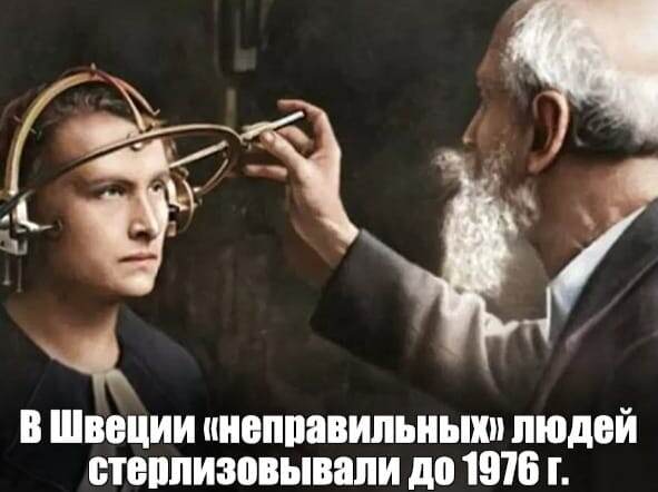 В 1921 году в Уппсале открылся Государственный институт расовой биологии — первый в мире государственный евгенический центр. Его создание лоббировали парламентарии, банкиры и даже нобелевские лауреаты. Институт «научно» обосновал, что «расово неполноценные» (слабоумные, метисы, бедняки) размножаются быстрее «нордической элиты», угрожая нации. - Закон о «добровольной» стерилизации (1934–1976)