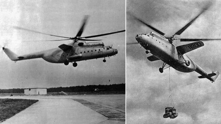 Так-с, я тут "выпал" немного по работе. Исправляемся! 5 июня 1957 года в небо, впервые, поднимается Ми-6. Ну как поднимается, повисел 3 минуты. Но зато какие! Лётчик-испытатель Рафаил Капрэлян, мужик, для которого страх – это просто слово в словаре, забирается в кабину, запускает два турбовальных движка и аккуратно поднимает эту громадину в воздух. Винт на 35 метров гудит так, что уши закладывает, а земля дрожит, будто от танковой колонны. Три минуты полёта, и всё – история началась. Ми-6 не просто взлетел, он показал, что СССР умеет строить не только ракеты, но и вертолёты, которые перепишут правила игры. Это было не хухры-мухры, а настоящий летающий танк, который в те годы был как ядерный удар по всем западным вертолётам. СССР тогда вообще не мелочился, и Ми-6 стал тем самым здоровенным кулаком, который показал, кто в небе главный. 1957 год, холодная война в самом разгаре, а в ОКБ Миля, под чутким взглядом Михаила Леонтьевича, рождается махина, которая должна таскать до 12 тонн груз