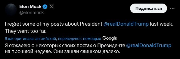 "Я сожалею о некоторых своих постах про Трампа на прошлой неделе. Это зашло слишком далеко"