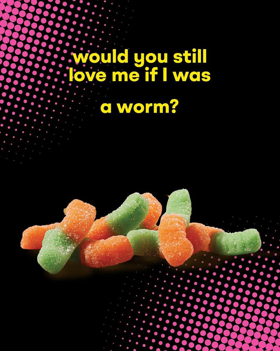 Оу, Baskin Robins очень забавно обыграл мемный тренд «любил/а ли бы ты меня, если бы я был/была червяком». Бренд заколлабился с кислыми мармеладными червяками Trolli и выкатил мороженое с таким же вкусом. Любил бы ты меня, если бы я был червяком или шариком мороженого? Любим такое 🙂