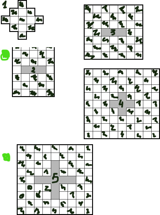 На одной из клеток доски сидит жук. За один ход он может переползти в соседнюю по стороне клетку. Для каких досок существует такая клетка, начав с которой, жук может побывать на каждой клетке доски ровно по одному разу? (Серые области внутри таблицы — это вырезанные клетки.) Чтобы жучек смог совершить такое путешествие, нужно чтоб он каждый раз переползал на клетку противоположного цвета. Т.е. подходящая доска та, которую можно разбить на доминошки. Это 2 и 5. Остальные задачи раздела