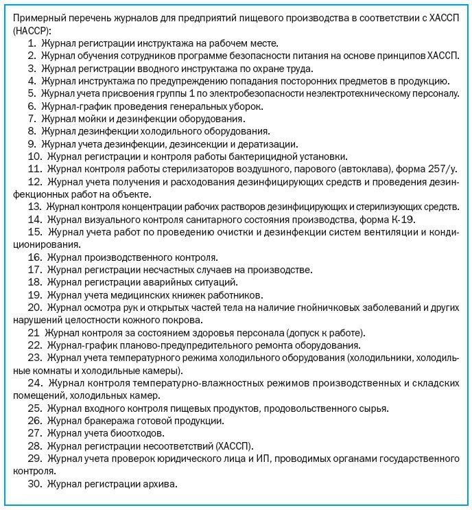 ✏ Примерный перечень журналов для предприятий пищевого производства в соответствии с ХАССП (HACCP