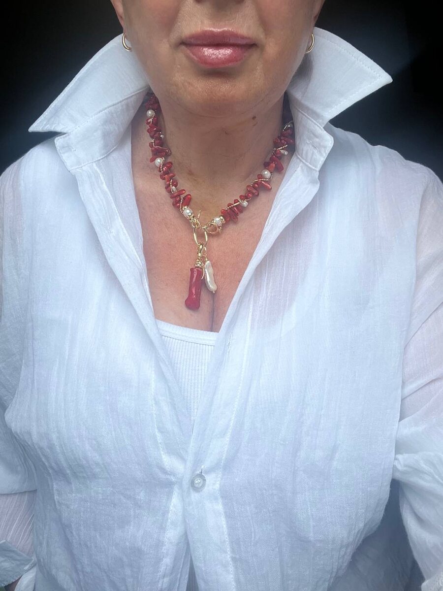 🔥☄️Универсальное украшение-трансформер с кораллом и жемчугом