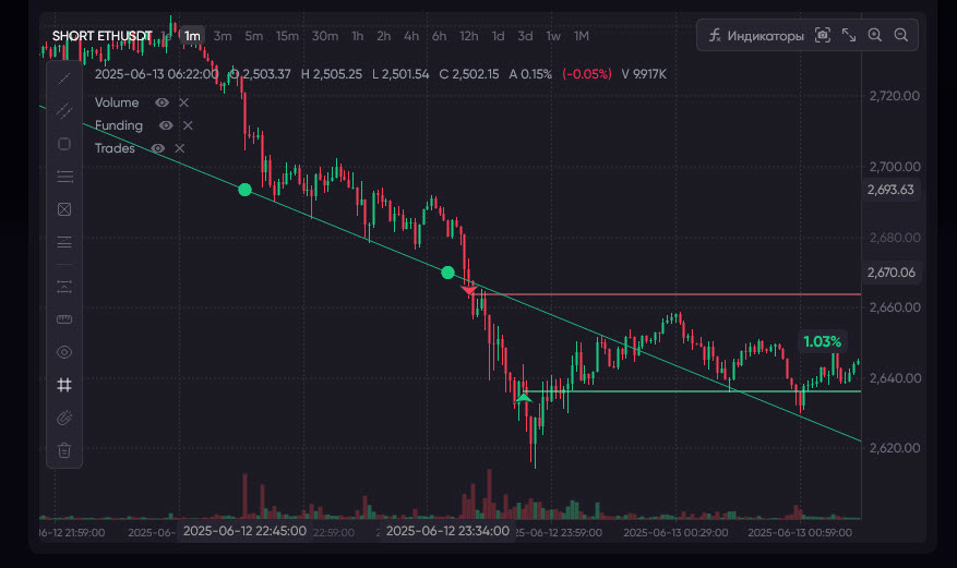 Хочу рассказать о сегодняшнем опыте торговли на новостях. Под новостями я имею в виду ночной удар Израиля по объектам Ирана. Переговоры зашли в тупик. Последний раунд отменили. Израиль выступил с угрозами. Удар ожидался в ближайшее время. Еще вчера вечером прошла интересная новость о резком росте «индекса пиццы Пентагона». В Пентагоне в несколько раз выросло суточное потребление пиццы днем и ночью))) Явное планирование операций. Такое же было при атаках на Афганистан и Ирак. Странный конечно сигнал, а может и фейковый. Но сработал же! Кроме этого вечером рынок крипты начал медленно снижаться. Было очень похоже, что инсайдеры начали потихоньку продавать активы. Решил попробовать выставить лимитки на сделку (на ночь) и посмотреть. С небольшим риском. 1. Что выбрать для торговли? Для торговли выбрал Эфир (ETHUSDT). Американские фонды покупали в основном биткоин и эфириум. У них это рисковые активы. Обычно в случае подобного кризиса они начинают избавляться именно от них, переход